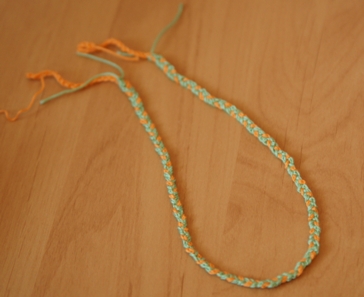 Для бус вам потребуется: совсем чуть-чуть пряжи я использовала трех цветов: зеленую, оранжевую и голобую, но думаю чем больше цветов, тем бусы будут веселее.