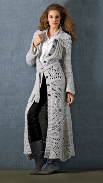 А создать определенный настрой Вам поможет вязаное пальто. В нем вы будете обаятельны и привлекательны. И конечно же вязаное пальто привлечет внимание многих мужчин.Пальто вяжут как из толстой, так и из тонкой пряжи. В зависимости от сезона, ведь тонкое трикотажное пальто можно одеть летним прохладным вечером.Модельеры в осенний сезон 2009 года не оставили вязаное пальто без внимания. В этом сезоне оно стало более ярким, привлекающим внимание.